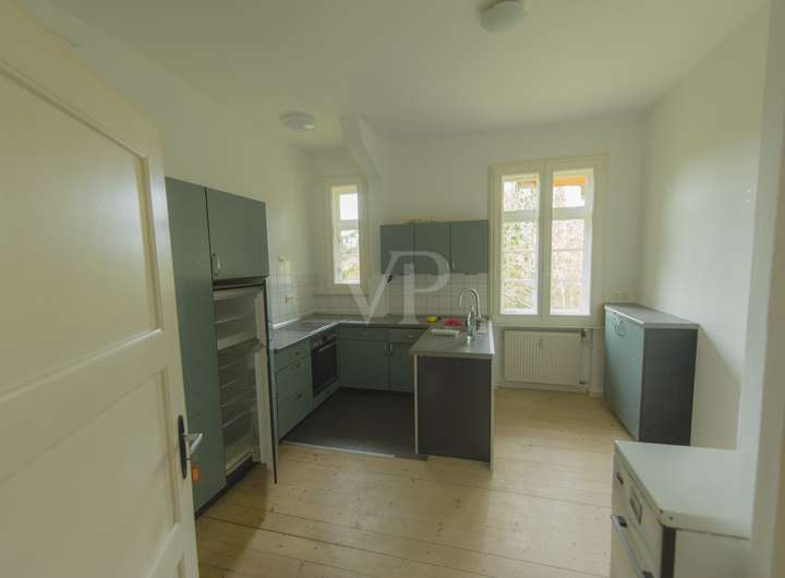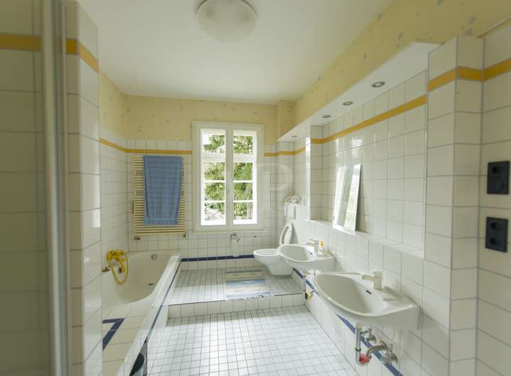 1991 Kernsanierung mit Elektrik, Trinkwasser und Abwasser, Grundrissverbesserung und Errichtung von Bädern, sowie die Erneuerung der Holzfussböden 2012 energetische Sanierung mit Holz-Kastenfenster und Dämmung des Luftzwischenraums des Außenmauerwerks, sowie der oberen Geschossdecke über der Dachgeschosswohnung. Zusätzlich wurde eine freitragende Schallschutzdecke über der Erdgeschosswohnung eingebaut. 3 Einzelgaragen 1 Carport 6 Stellplätze 1 Geräteraum 1 Schuppen für eine Werkstatt 1 Holzschuppen von 1998 genutzt zur Lagerung der Gartenmöbel etc. für das Gästehaus 2008 Erneuerung der Ölbrennwertheizung Der Warmwasserspeicher ist von 2023 ca. 1000 m² eingezäunter Garten am Haupthaus