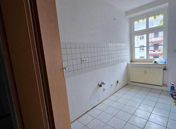 Das Bad ist mit einer Wanne ausgestattet (mit Fenster). Die Küche hat ebenfalls ein Fenster.