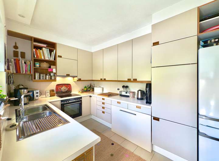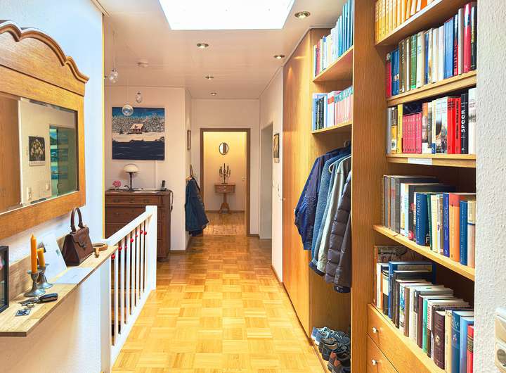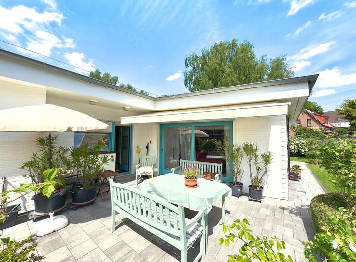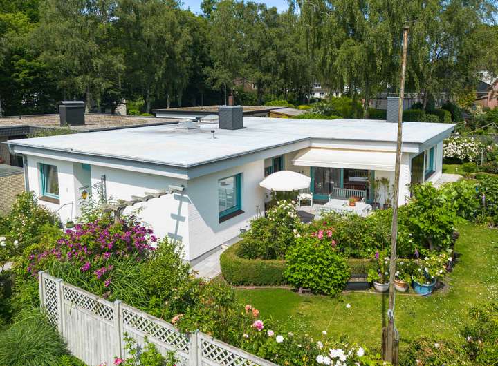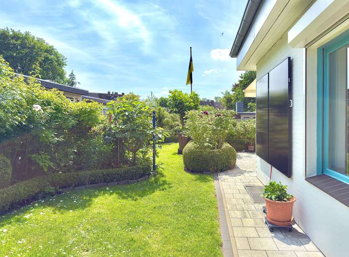 Dieser freistehende Bungalow mit Flachdach aus dem Jahr 1979 befindet sich in einem äußerst gepflegten Zustand und überzeugt durch seine ruhige Lage, eine durchdachte Raumaufteilung sowie stilvolle Ausstattung. Die Immobilie liegt in einer kleinen Bungalowsiedlung in einer Sackgasse und verbindet zentrales Wohnen mit angenehmer Ruhe. Auf ca. 136 m² Wohnfläche verteilen sich fünf gut geschnittene Zimmer. Das großzügige Wohnzimmer mit Zugang zur Terrasse bietet viel Raum zum Wohlfühlen. Dachfenster und große Glasflächen sorgen für eine helle und freundliche Wohnatmosphäre. Die hochwertige Poggenpohl-Einbauküche mit neu gefliesten Bodenflächen bietet ebenfalls einen direkten Zugang zur Terrasse und dem liebevoll angelegten Garten mit zwei Sitzbereichen. Zur Ausstattung zählen unter anderem gepflegter Parkettboden in den Wohnräumen, Fliesen in der Küche und den Bädern, eine Gaszentralheizung, teilweise elektrische Rollläden sowie ein Kaminofen, der aktiv genutzt werden darf. Ein modernisiertes Badezimmer und ein Gäste-WC bieten hohen Komfort und wurden 2018 vollständig renoviert. Das Dach wurde 2009 erneuert und gedämmt. Im Jahr 2018 erfolgte außerdem der Austausch sämtlicher Fenster durch zweifach verglaste Elemente aus Holz und Kunststoff. Der Vollkeller bietet ein zweites Badezimmer, großzügige Nutzflächen, einen flexibel nutzbaren Hobbyraum sowie einen separaten Abstellraum mit direktem Zugang zum Garten über eine Außentreppe. Eine Garage ist ebenfalls vorhanden. Der Luftraum über der Garage ist den Stadtwerken zugeordnet; dies hat jedoch keinerlei Auswirkungen auf die Nutzung des Grundstücks. Dieses massiv gebaute Haus eignet sich ideal für Familien, Paare oder anspruchsvolle Ruhesuchende, die Wert auf Qualität, Ruhe und eine zentrale Lage legen. Wir freuen uns auf Ihre Anfragen!