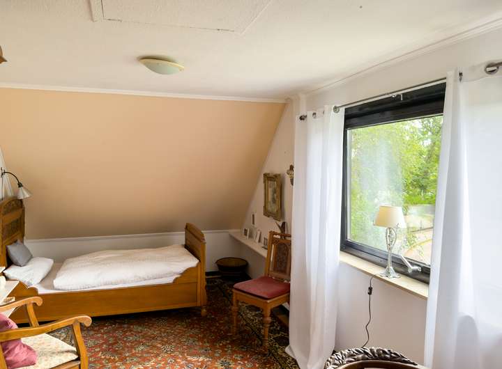 Dieses großzügige Einfamilienhaus mit Einliegerwohnung vereint viel Platz, hochwertige Ausstattung und ein außergewöhnlich großes Grundstück in ruhiger Lage. Auf rund ca. 200 m² Wohnfläche und etwa ca. 100 m² zusätzlicher Nutzfläche bietet Ihnen dieses Haus vielfältige Nutzungsmöglichkeiten für Familie, Tierliebhaber oder Menschen mit Platzbedarf für Hobby und Beruf. Der offen gestaltete Wohnbereich im Erdgeschoss überzeugt mit einer durchdachten Raumaufteilung: Ein weitläufiger Wohn- und Essbereich mit offener Küche bildet das Herzstück des Hauses. Von hier aus gelangen Sie sowohl auf die Terrasse als auch in den hellen Wintergarten. Ein Gäste-WC, ein Hauswirtschaftsraum sowie der einladende Eingangsbereich runden das Raumangebot ab. Im Obergeschoss befinden sich ein Schlafzimmer mit Zugang zum Balkon, ein Badezimmer mit Badewanne und Dusche sowie ein weiteres Zimmer. Die Einliegerwohnung bietet zwei zusätzliche Zimmer, eine Küche sowie ein eigenes Bad und eignet sich ideal zur Vermietung, für Gäste oder als Arbeitsbereich. Das gepflegte Haus aus dem Jahr 1980 wurde regelmäßig renoviert. Zu den Besonderheiten zählen zwei Wintergärten, eine Galerie im Wohnbereich, Fußbodenheizung in allen Räumen sowie hochwertige Marmorböden im Erdgeschoss. Ein Glasfaseranschluss ist vorhanden.