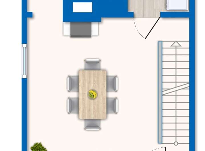 Über die Hauseingangstüre betreten Sie die Diele und sodann den geräumigen Wohn- und Essbereich. Hieran schließt sich die Küche mit Zugang in den Innenhof, der zu gemütlichen Stunden im Freien einlädt, an. Die vorhandene Einbauküche verbleibt im Objekt. Zudem betreten Sie über den Wohn- und Essbereich das erste von drei Badezimmern, ausgestattet mit einer Dusche, einer Badewanne, einem Waschtisch und einer Toilette.