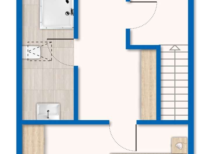 Über die offen gestaltete Treppe gelangen Sie in das Obergeschoss, welches eine großzügige Diele, zwei Schlafzimmer und ein Fensterbad, ausgestattet mit einer Dusche, einem Waschtisch und einer Toilette für Sie bereit hält.