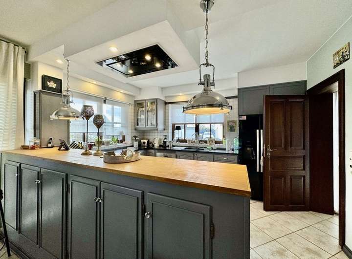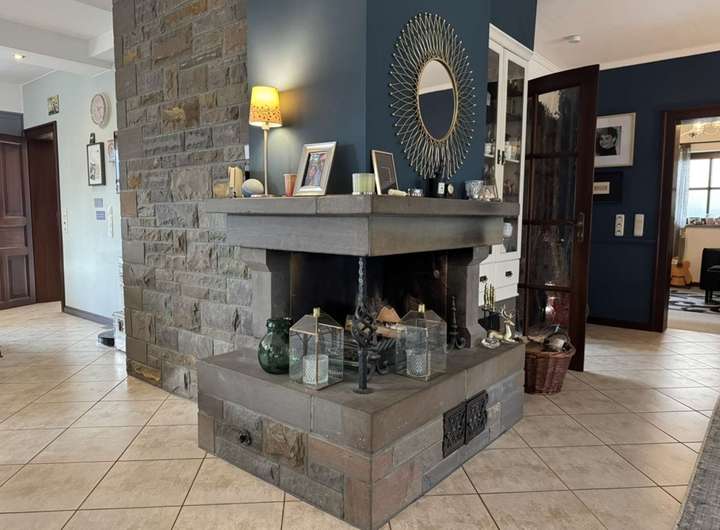 Das Herzstück dieser Villa ist der einladende Kamin, der für gemütliche Abende mit Familie und Freunden sorgt. Die großzügige Einbauküche ist perfekt ausgestattet und bietet ausreichend Platz für kulinarisches Vergnügen.