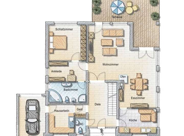 Ein besonderes Highlight ist der schöne Garten, der zum Entspannen und Genießen der Natur einlädt. Zusätzliche Annehmlichkeiten wie eine Garage, ein Keller und ein Gäste-WC runden das Angebot ab.