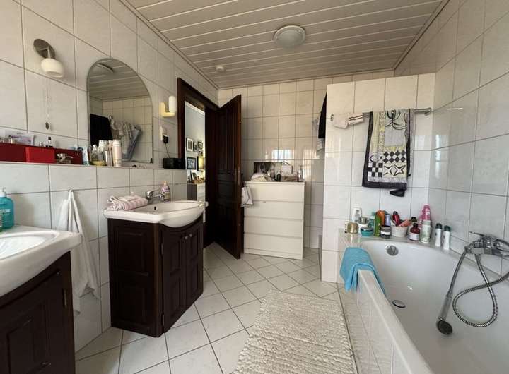 Betreten Sie diese exquisite Immobilie und genießen Sie den Komfort von Fliesen, Laminat und Teppichböden, die in den verschiedenen Bereichen geschmackvoll kombiniert wurden. Die moderne Fußbodenheizung sorgt das ganze Jahr über für ein angenehmes Wohnklima.