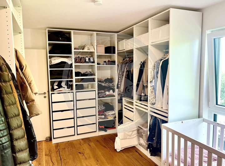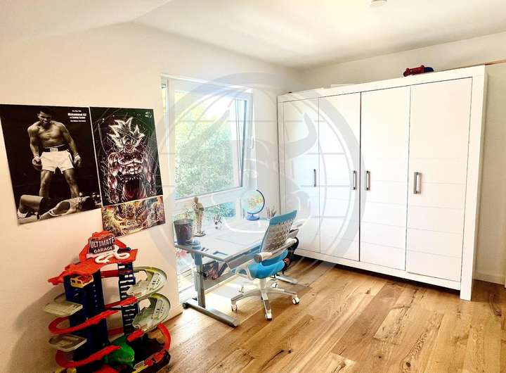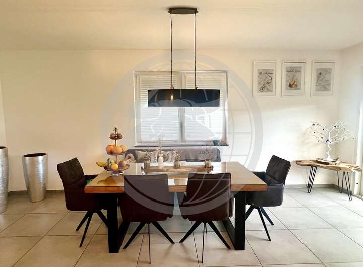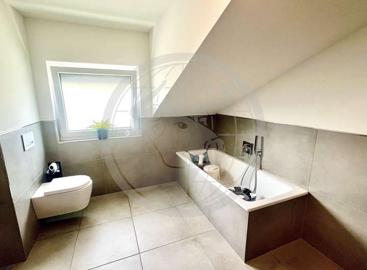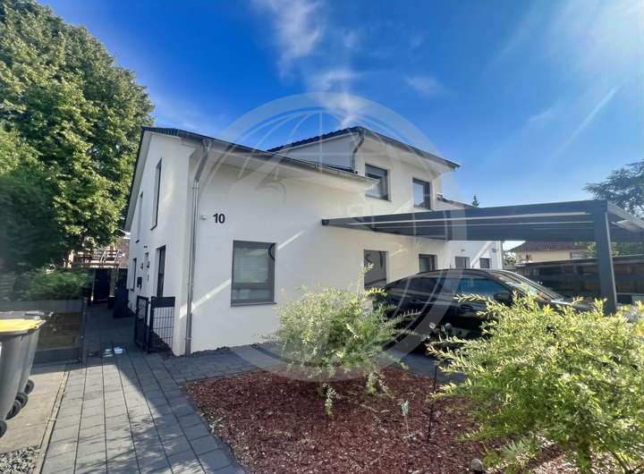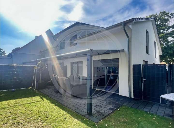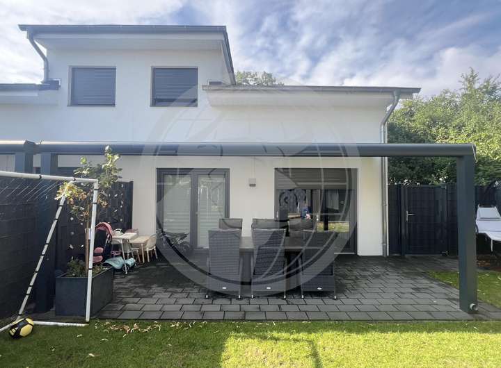Diese 2018 errichtete, neuwertige Doppelhaushälfte vereint moderne Architektur mit einer warmen, einladenden Atmosphäre. Bereits beim Betreten empfängt Sie der helle Flur, der nicht nur mit einer praktischen Garderobenecke überzeugt, sondern auch den Zugang zu allen Räumen im Erdgeschoss ermöglicht. Vier großzügige und mit stilvollen Fliesen ausgestattete Räume stehen hier zur Verfügung, wobei das Herzstück zweifellos der lichtdurchflutete Wohn- und Essbereich ist. Große Fensterfronten schaffen eine harmonische Verbindung zwischen Innen- und Außenbereich und führen direkt auf die überdachte Terrasse sowie in den liebevoll angelegten Garten – ein perfekter Ort für gemütliche Stunden im Freien. Die separate Küche bietet reichlich Platz für kulinarische Kreativität und gemeinsame Kochabende mit Familie oder Freunden. Ergänzt wird das Erdgeschoss durch einen großzügigen Hauswirtschaftsraum, der wertvolle Abstellfläche bietet, sowie ein Gäste-WC. Im Obergeschoss erwarten Sie drei weitere Zimmer, die sich flexibel als Schlaf-, Kinder- oder Arbeitszimmer nutzen lassen. Das Elternschlafzimmer besticht durch eine charmante Ecke, die sich ideal als Kleiderschrank einrichten lässt. Das moderne Hauptbadezimmer mit Badewanne und ebenerdiger Dusche lädt zu entspannten Wellnessmomenten ein.