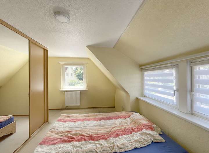 Entdecken Sie die außergewöhnliche Ausstattung dieser Immobilie, die Komfort und Funktionalität aufs Beste vereint. Das Objekt bietet Ihnen ein erneuertes Dach, ein Wärmedämmverbundsystem sowie Fenster aus dem Jahre 2006. Sämtliche Fenster, mit Ausnahme der Gaubenfenster im Dachgeschoss, verfügen über manuell zu bedienende Außenrollläden. Die Beheizung des Hauses erfolgt über eine zeitgemäße Gaszentralheizung mit einer Zirkulationspumpe. Die zeitlos weiß gestalteten Bäder befinden sich in einem gepflegten Zustand, ebenso die Einbauküche im Landhausstil. Im Erdgeschoss ist ein einheitlicher Bodenbelag aus PVC-Designdielen verlegt worden, im Obergeschoss in den beiden Räumen Teppichboden. Die Immobilie ist teilunterkellert und bietet somit zusätzlichen Stauraum und Platz für die Heizungsanlage aus dem Jahr 2018, die für wohlige Wärme in den kalten Jahreszeiten sorgt. Genießen Sie entspannte Stunden und frische Luft auf der großzügigen Terrasse.