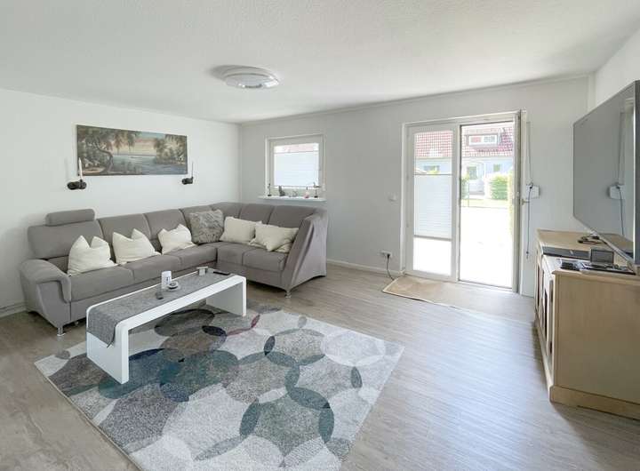 Auf einem real geteilten Grundstück von ca. 247 m² präsentiert sich das Haus mit einem durchdachten Grundriss und mit einer Wohnfläche von ca. 75 m² zzgl. der Terrasse, ergänzt durch zusätzlich ca. 23 m² Nutzfläche im Teilkeller. Das Haus besticht durch seine helle und einladende Atmosphäre, die durch die zeitgemäße Einbauküche und die modernen Bäder unterstrichen wird.