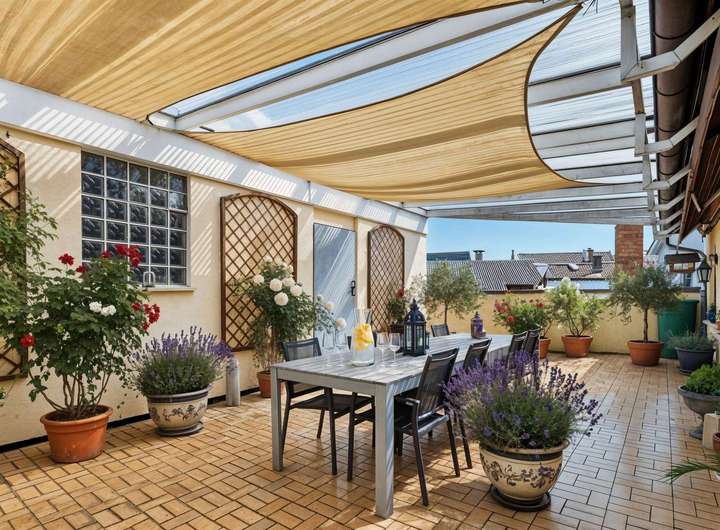 Große, sonnige Dachterrasse (60 m²) – ideal zum Entspannen oder genussvoll frühstücken