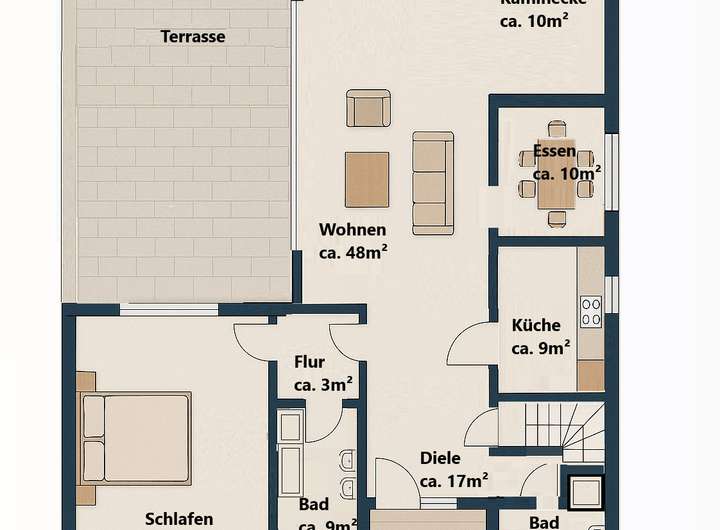 Das Haus verfügt über ca. 4 Zimmer, darunter 3 als mögliche Schlafzimmer, die ausreichend Platz für die gesamte Familie bieten. Zudem sind 3 Bäder vorhanden, die den Wohnkomfort erhöhen und für eine angenehme Verteilung der Räumlichkeiten sorgen.