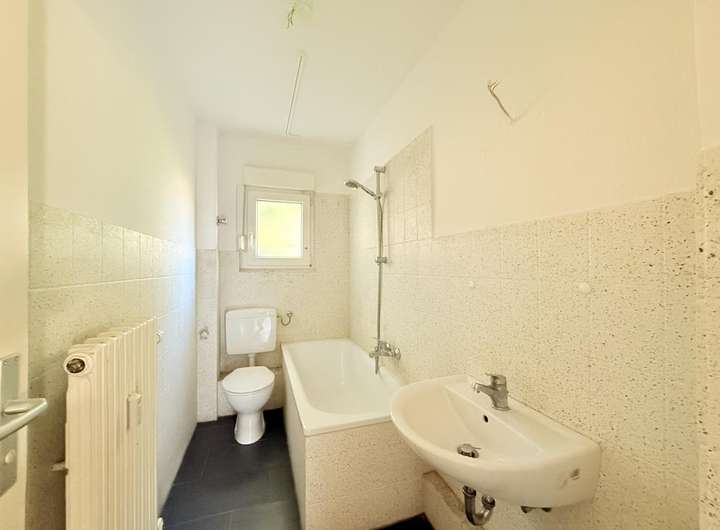 Die ca. 51 m² große Erdgeschosswohnung verfügt über zwei helle Zimmer, eine Küche sowie ein Tageslichtbad mit Wanne. Dank der doppelverglasten Kunststofffenster sind alle Räume lichtdurchflutet und zugleich mit Rolläden abzudunkeln. Diese Einheit steht aktuell leer, ist jedoch gepflegt und bietet sofortiges Vermietungspotenzial oder Eigennutzungsmöglichkeiten.