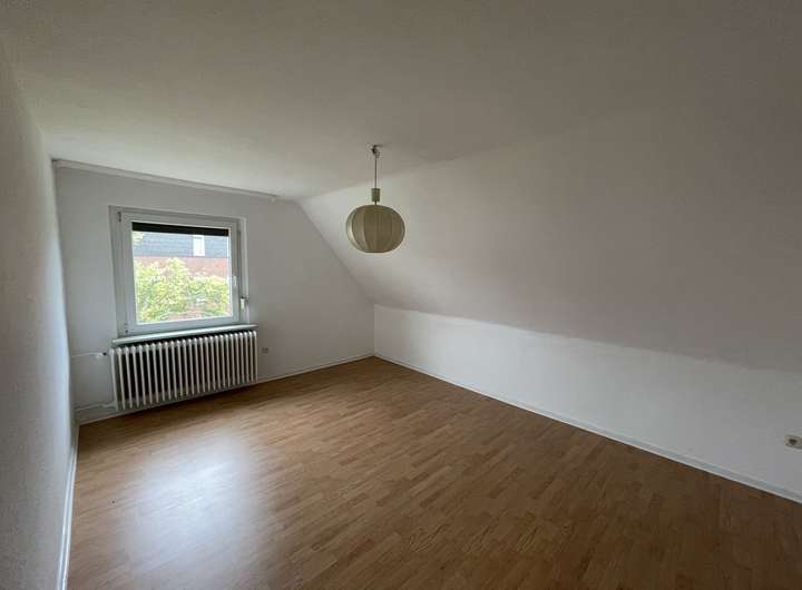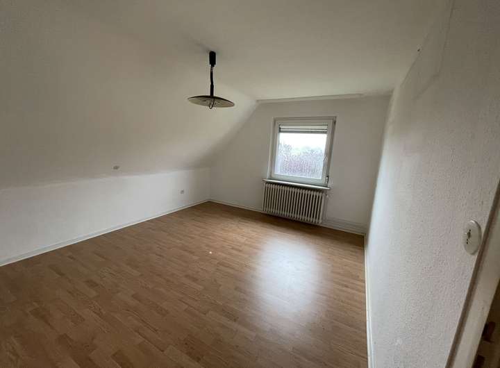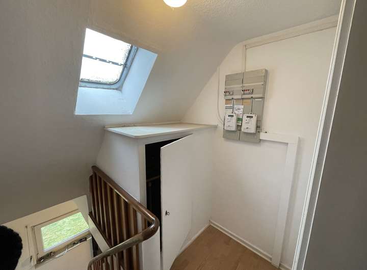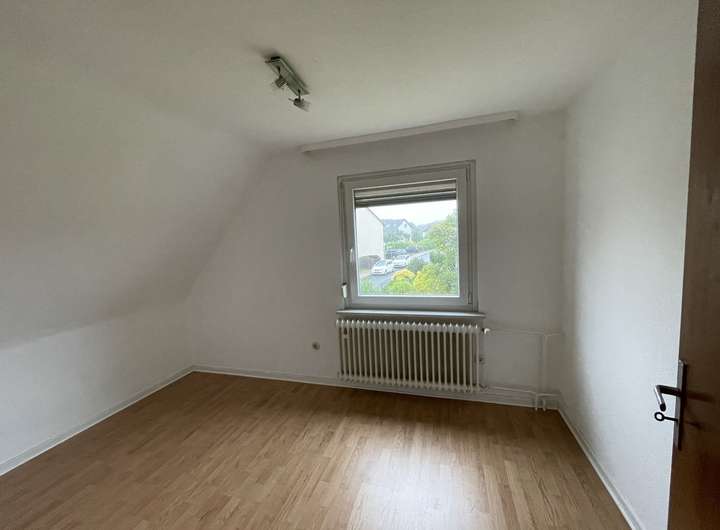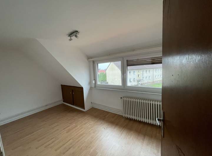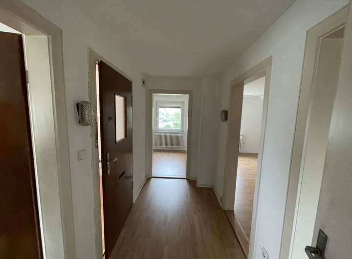 Zwei Schlafzimmer, ein Wohnzimmer, Küche, Bad, Flur und Treppengang.