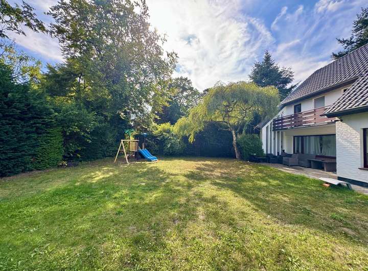 Das Haus ist vollständig unterkellert und bietet mit einem großzügigen Außenpool – derzeit außer Betrieb – sowie einem von Hecken und altem Baumbestand umgebenen, blickgeschützten Garten ein hohes Maß an Lebensqualität und Privatsphäre.