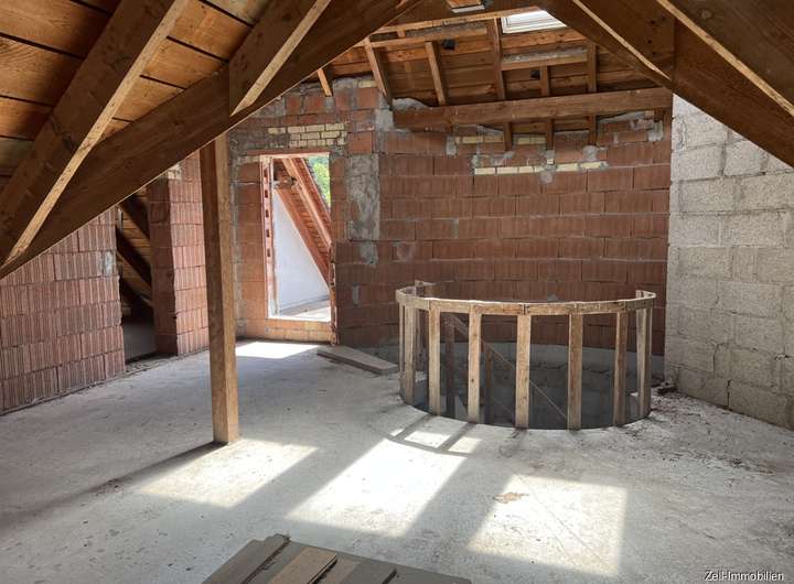Im Erdgeschoss befindet sich die ehemalige Tankstelle mit Fahrzeughalle, Werkstatt und Sozialraum mit ca. 132 m² Nutzfläche. Das 1. Obergeschoss bietet zwei Büroeinheiten. Büro 1 hat ca. 50 m² Nutzfläche und beinhaltet ein ca. 38 m² großer Büroraum, zwei WCs und eine Teeküche. Das zweite Büro hat eine Nutzfläche von ca. 85 m² hier sind drei Büroräume, zwei WCs und eine Teeküche vorhanden. Im Dachgeschoss befinden sich zwei Wohneinheiten. Die Wohnung Nr. 1 hat eine Wohnfläche von ca. 41 m² bestehend aus 2-ZKB. Die Wohnung Nr. 2 hat eine Wohnfläche von ca. 66 m² bestehend aus einem Wohnzimmer mit angrenzender Küche, ein Schlafzimmer und ein Tageslichtbad. Im Spitzboden befinden sich ca. 39 m² Nutzfläche mit direktem Zugang zur schönen Dachterrasse mit Ausblick auf das Grundstück und den umliegenden Wald. Die beiden Wohnungen im Dachgeschoss und der Spitzboden kann auch zu einer Wohneinheit zusammengefasst werden. Eine flexible Neugestaltung und Umnutzung der Räume ist aufgrund des Rohbaucharakters der Immobilie individuell möglich.