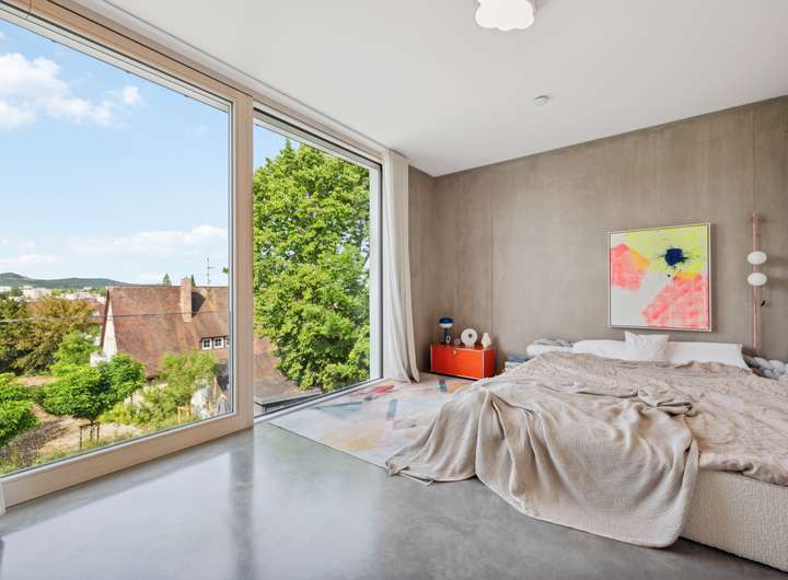 Es erwarten Sie großzügige Schlafzimmer mit bodentiefen Fenstern, ein luxuriöses Elternbad, eine Ankleide mit maßgefertigten Einbauten sowie ein separates Kinder- und Gästebad. Das Haus verfügt zudem über ausreichend Kellerflächen und einen integrierten Wohnraum mit eigenem Duschbad im Untergeschoss, z.B. für Gäste oder Kinder mittleren Alters. Jede Ebene überzeugt mit cleveren Lösungen und viel Privatsphäre.