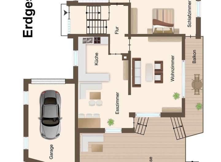 Im Erdgeschoss befindet sich das Wohnzimmer und die Wohnküche mit großem Essbereich,. Von hier aus gelangt man auf den Balkon mit wunderschöner Aussicht! Daneben sind zwei Schlafzimmer, ein Badezimmer mit Wanne, Dusche und Fenster sowie ein separates WC.