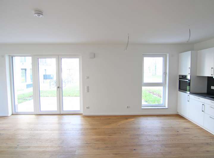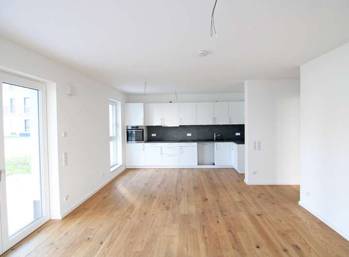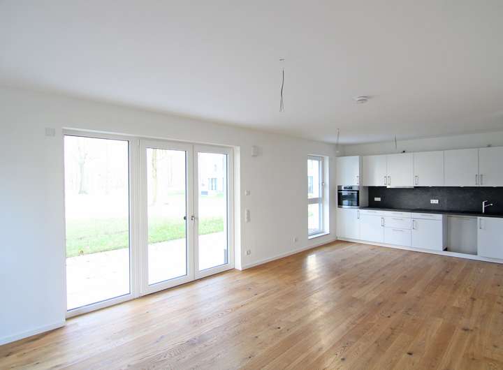 Einziehen und sofort Wohlfühlen: diese Traumwohnung liegt im lichtdurchfluteten, sonnigen Erdgeschoss und zeigt einen gelungenen, familiengerechten Grundriss. Eine Grundrissskizze (ohne Gewähr für Richtigkeit) haben wir diesem Exposé bereits beigefügt, damit Sie eine erste Orientierung haben. Die hochwertigen Ausstattungen überzeugen: das Echtholzparkett Eiche hell/Landhausdiele schafft ein wohnliches Ambiente, die gespachtelten Wände bringen Eleganz in die Wohnung. Sehr sehenswert ist die moderne Einbauküche, die sehr passend und auch hochwertig wirkt. Gleich zwei Bäder in hochwertigen Fliesungen und großen Duschen stehen für Sie bereit. Die Wohnung ist sehr hell und auch sonnig. Von der geräumigen Terrasse haben Sie einen tollen Blick ins Grüne.