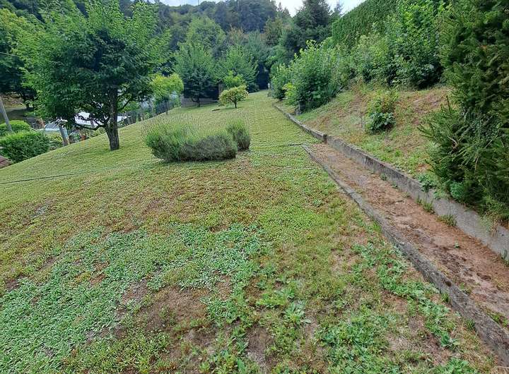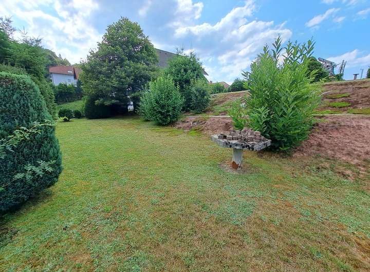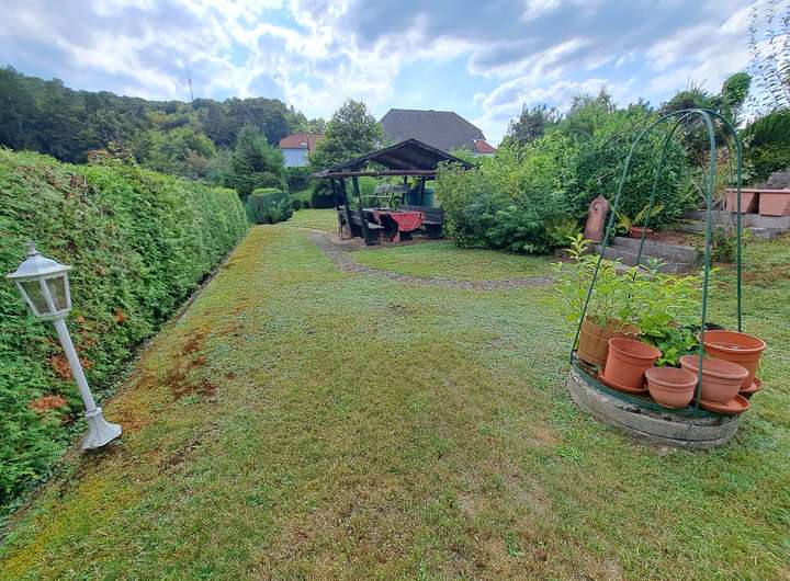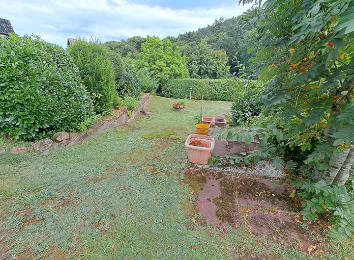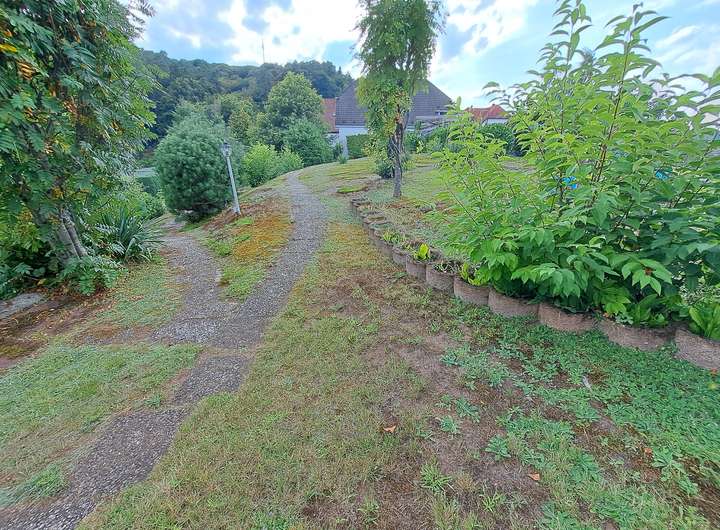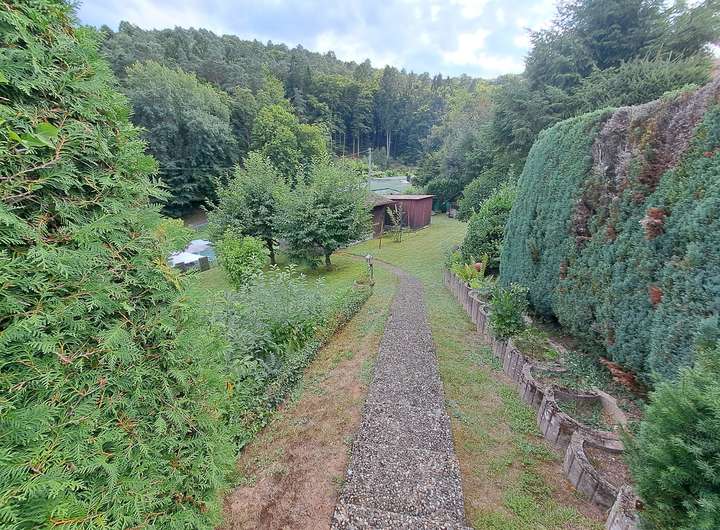 Außergewöhnlich großes zusammenhängendes Grundstück in südlicher Hanglage in 3 Etagen. Gepflegte parkähnliche Anlage mit großzügiger Gartenlaube, voll ausgestattetem Partyhäuschen und nützlicher Werkstattgarage. Anlage mit sehenswerten Sandsteinquadern, befestigten Wegen und Steintreppen. Sehenswerte Solitärpflanzen, Baumbestand getrimmt. Privatsphäre in nahezu alle Richtungen durch vitale Sichtschutzhecken.
