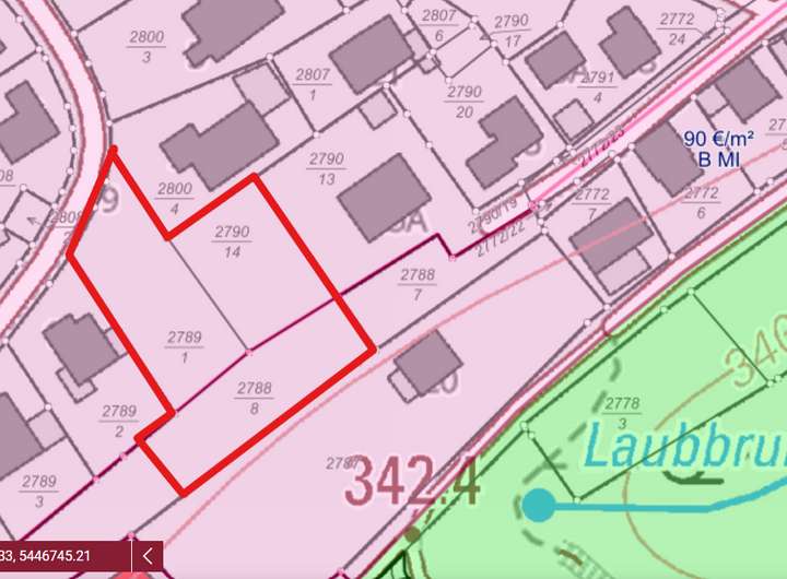 Die Grenze zu den Flurstücken 2790/13 und 2788/7 ist bei Bedarf skalierbar und die Fläche somit erweiterbar.