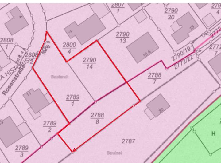 Gemarkung Lemberg Flurstück Rosenstrasse 9 2790/14 mit 819 qm, Sanggarten 2789/1 mit 627 qm und Laubbrunnen 2788/8 mit 712 qm.