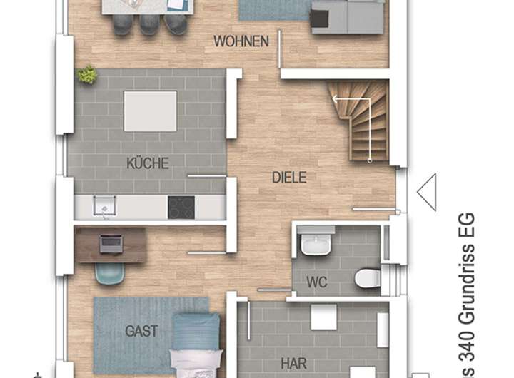 Neben der Fassade kann selbstverständlich auch der Grundriss Ihren Wünschen angepasst werden.