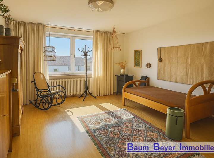 Dieses freistehende Einfamilienhaus erstreckt sich über zwei Etagen und bietet viel Platz für die ganze Familie. Im Erdgeschoss mit ebenerdigen Zugang befinden sich ein großzügiges Wohn- / Esszimmer mit integriertem Arbeitsbereich, eine separate Küche, ein Gästezimmer, ein Schlafzimmer, ein Gäste-WC sowie ein Badezimmer mit Wanne. Der große Balkon mit einem traumhaften Fernblick ist von dem Wohn- und Esszimmer und dem Schlafzimmer begehbar und lädt zum Verweilen und Entspannen ein. Im Gartengeschoss befinden sich zwei weitere Zimmer, die vielfältig genutzt werden können – als Kinderzimmer, Hobbyraum oder Büro. Zudem gibt es einen Hauswirtschaftsraum, Vorratsräume, ein Duschbad, eine Sauna, einen Heizungsraum und eine Waschküche, die direkt in den liebevoll angelegten Garten führt, der viel Platz zum Spielen, Entspannen und Gärtnern bietet. Zu dem Haus gehört eine Garage und ein Gartenhäuschen. Dieses Haus verbindet lichtdurchflutete Räume, eine schöne Aussicht und viel Platz – perfekt für Familien, die das Besondere suchen.