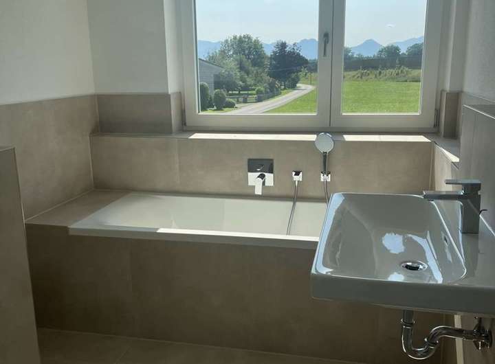Willkommen in Ihrem stilvollen Zuhause mit traumhaftem Bergblick! Diese moderne Doppelhaushälfte bietet auf ca. 102 m² Wohnfläche eine durchdachte Raumaufteilung mit drei Zimmern, einem großzügigem Bad und einer hochwertigen Ausstattung. Die südwestlich ausgerichtete Terrasse sowie der Garten laden zum Entspannen ein. Das Haus ist fertiggestellt, bezugsbereit und überzeugt mit moderner Technik wie Fußbodenheizung, Wärmepumpe und elektrischen Rollläden. Hier erwartet Sie ein Zuhause, das Komfort, Qualität und eine attraktive Lage perfekt vereint.