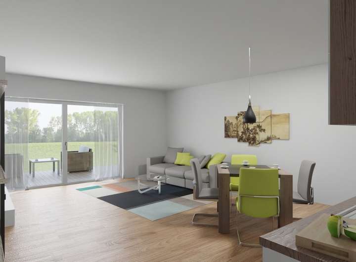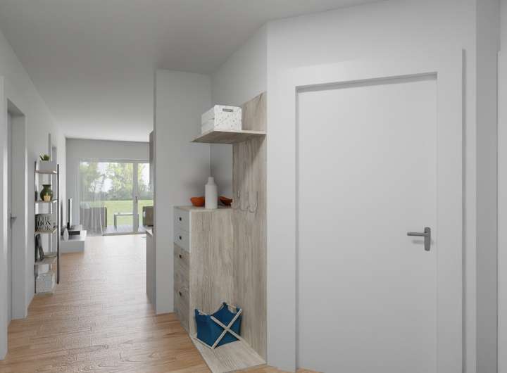 Die bezugsfertigen Wohnungen sind tapeziert und Sie haben die Auswahl an verschiedenen hochwertigen Bodenbelägen. Zur weiteren Ausstattung gehören 3-fach verglaste Kunststoff-Fenster mit elektrischen Rollläden sowie Sanitärobjekte und barrierefreie Duschen von namhaften Herstellern.