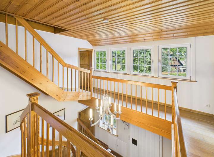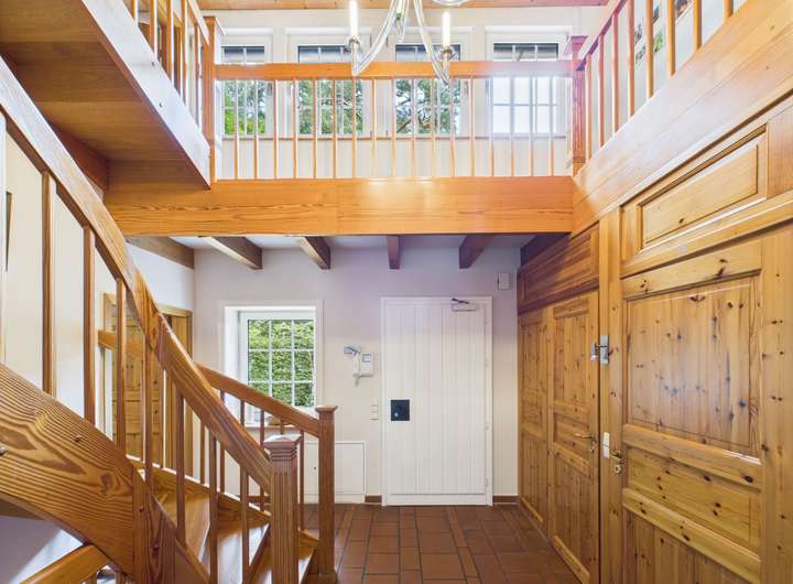 Dieses wunderschöne Fachwerkhaus wurde als Zweifamilienhaus gebaut und bietet Ihnen auf einer Grundstücksfläche von 1935 m² pure Wohnqualität. Mit insgesamt 348 m² Wohnfläche verteilt auf 9,5 Zimmer und über zwei Etagen hinweg, bietet diese Immobilie ausreichend Platz für die ganze Familie. Dieses Traumhaus bietet Ihnen nicht nur ein stilvolles Ambiente, sondern auch modernen Komfort und hochwertige Ausstattung. Eines der Highlights dieser Immobilie ist die separate 2 Zi. Anliegerwohnung mit ca. 65 m², die sich perfekt für Gäste, als Home Office oder auch zur Vermietung eignet. Die Wohnung ist komplett autark und hat ihre eigene Heizung sowie auch Zähler, welche die Abrechnung erleichtern. Neben dem stilvollen Fachwerk punktet dieses Haus mit einer modernen Fußbodenheizung, die für wohlige Wärme in allen Räumen sorgt. Der Eingangsbereich des Haupthauses überzeugt mit ihrem offenen Design und einem prachtvollen Kronleuchter. Im Erdgeschoss finden Sie die hochwertige und offene Küche mit angrenzenden Essbereich, eine Bibliothek und das knapp 50 m² große Wohnzimmer mit herrlichem Kamin. Außerdem ist ein Gäste-WC vom Flur aus erreichbar. Die ehemalige Garage, welche hochwertig zu einem separaten Büro oder auch Gäste-Zimmer umgebaut wurde, erwartet Sie ebenfalls im Erdgeschoss. Im Obergeschoss finden Sie vier Schlafzimmer sowie zwei Vollbäder. Eines der Bäder befindet sich aktuell im Rohbau und kann nach Ihren eigenen Wünschen ausgebaut werden. Das Dachgeschoss kann ebenfalls ausgebaut werden und hat eine reine Fläche von knapp 30 m². Der Keller wurde 2025 frisch saniert und auch Ausbesserungs- und Malerarbeiten an der Fassade wurden durchgeführt, so dass Sie sich hier um nichts mehr kümmern müssen. Der Keller wurde aufwendig und hochwertig saniert und sog. "Weiße Wanne" verbaut. Sie schützt den Keller vor Grundwasser, Sickerwasser und aufsteigender Feuchtigkeit und ist wesentlich langlebiger und kostenintensiver in der Erstellung als handelsübliche Keller. Das Haus verfügt zudem über einen Carport mit Doppelstellplatz. Die ruhige Lage innerhalb einer Sackgasse sorgt für eine entspannte Atmosphäre und lädt zum Verweilen ein.