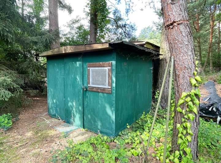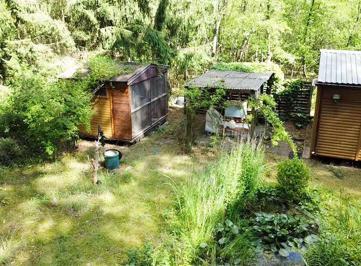 Das Grundstück besticht durch einen schönen, gepflegten Baumbestand und ist bereits mit einer kleinen Sommerlaube bebaut. Diese verfügt über eine Veranda, ein Wohnzimmer mit Kochnische, ein Schlafzimmer und ein kleines Bad. Wasser wird über einen eigenen Brunnen bezogen, das Abwasser über eine Sammelgrube entsorgt.