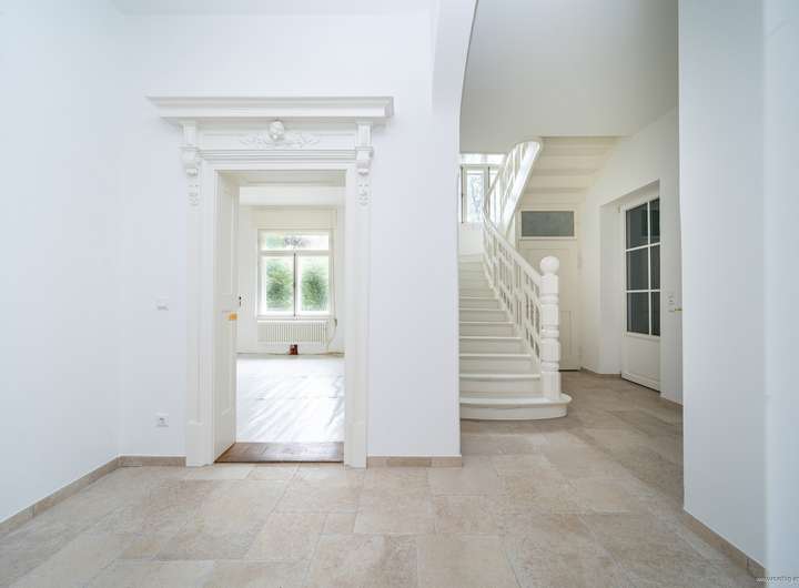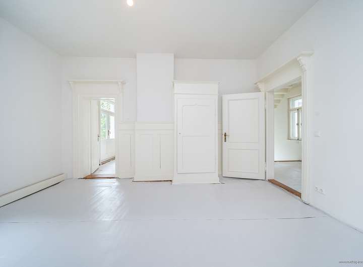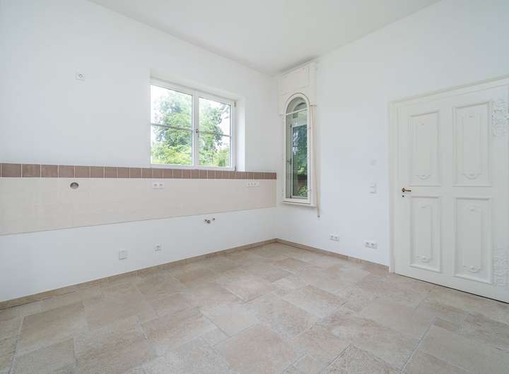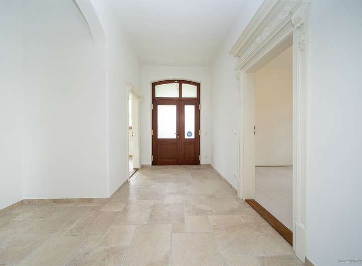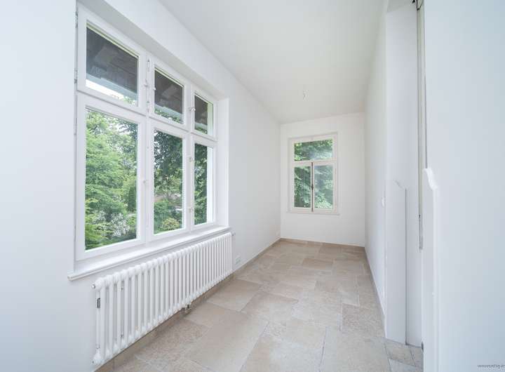 Alle Fenster wurden ausgetauscht bzw. zusätzlich verkleidet und neue Rollläden, elektrisch bedienbar, installiert. Für die gefließten Bereiche sind hochwertige Materialien verwendet worden Die Ausführungen erfolgen nach hohen Qualitätsstandards. Auf die Erhaltung historischer Elemente wurde detailliert geachtet: die originale Holztreppe wurde mit viel Liebe saniert, die alten Eichendielen sind versiegelt bzw. entölt worden. Für einen herrschaftlichen Eindruck sorgen die fachmännisch aufbereiteten und erhöhten historischen Türstöcke.