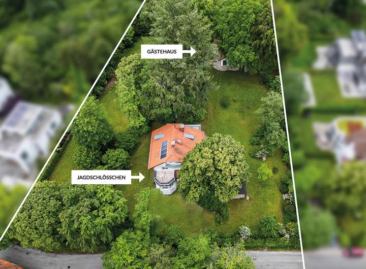 Der Mindestgebotspreis für dieses weitläufige Parkgrundstück in Traumlage (Starnberg - Söcking) mit historischem ehemaligem Jagdschlösschen samt Gästehaus liegt bei € 9.500.000,-.
