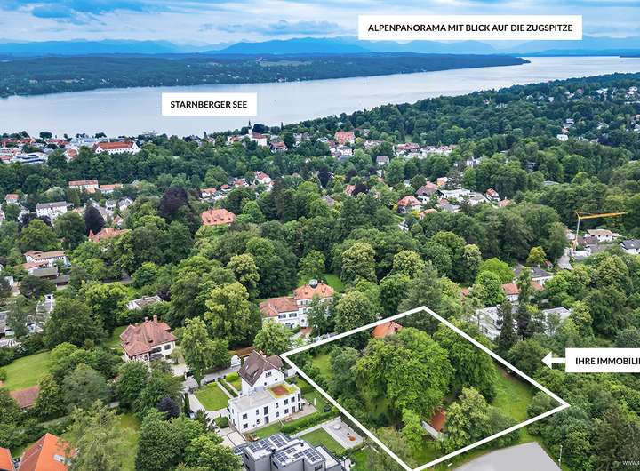 Erwähnenswert ist, dass in dieser Lage bzw. Straße so gut wie nie eine Immobilie verkauft wird - eine wahre Rarität. Das Grundstück mit dem ehemaligen Jagdschlösschen (Baujahr ca. 1902) und Gästehaus (Baujahr ca. 1958) befindet sich in einer der prominentesten Straßen Starnbergs.