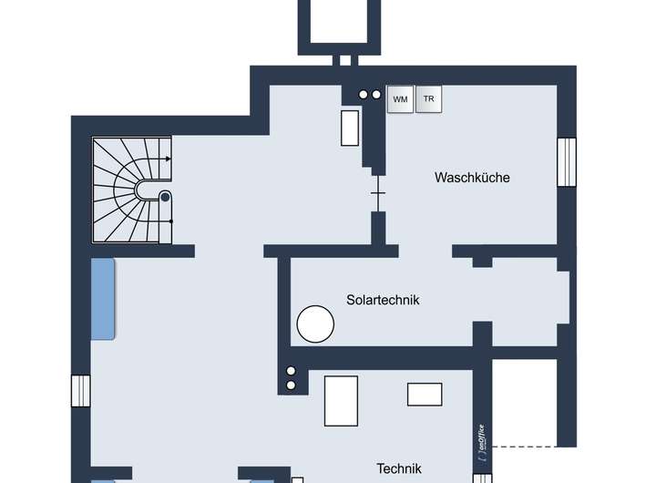 Im Zuge der ausführlichen Sanierungsarbeiten wurden alle großen, aufwendigen Gewerke (z.B. die komplette Elektroinstallation wie auch die Bereiche Heizung und Sanitär) auf den neusten Stand der Technik gebracht. Zum Beispiel wurde im Heizungsbereich für alle Heizkörper und für die neu installierte Fußbodenheizung separate Kreisläufe geschaffen. Das gesamte Untergeschoss ist abgedichtet und trockengelegt worden, zudem ist ein Notstromaggregat mit eigener Installation vorhanden - eine Regenwasserzisterne wurde ebenfalls integriert.