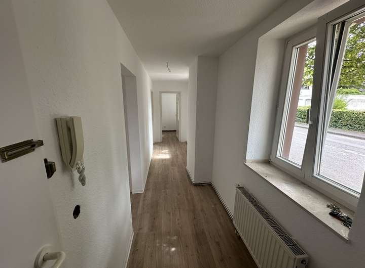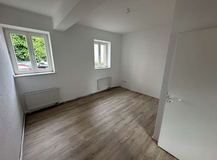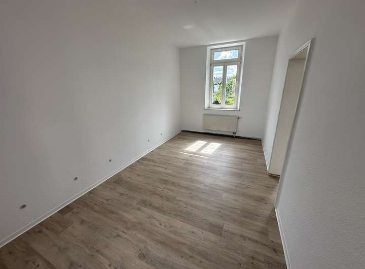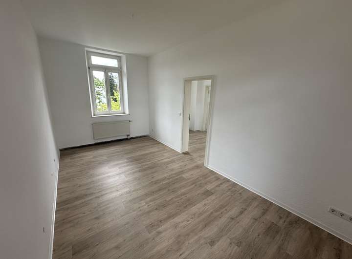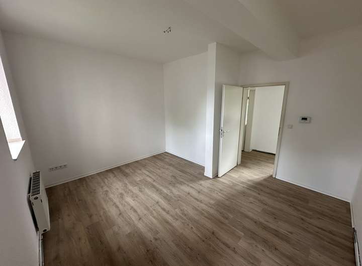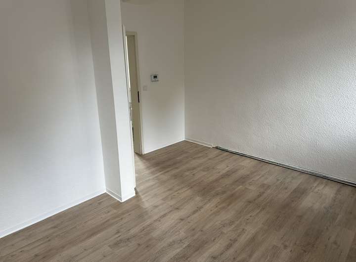 Die Wohnung ist aufgeteilt in ein großes Wohnzimmer, ein Schlafzimmer, eine separate Küche sowie ein Badezimmer mit WC. Die Räume sind mit neuem Laminat in Holzoptik ausgelegt, was für eine warme und gemütliche Atmosphäre sorgt. Die frisch gestrichenen Wände in neutralen Farbtönen bieten eine ideale Grundlage für Ihre persönliche Einrichtung.