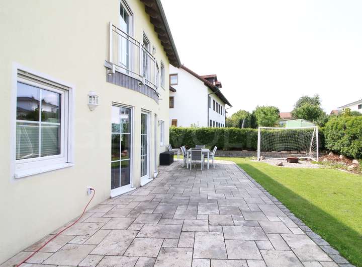 - Die große Terrasse auf der Rückseite des Hauses lädt zum Verweilen ein