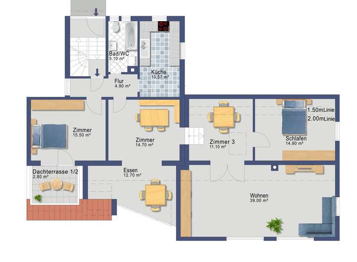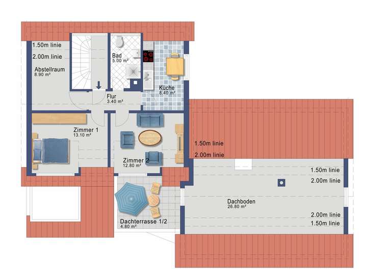Dachterrassenflächen: ca. 14,50 m²