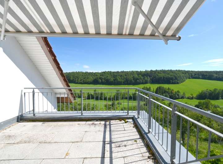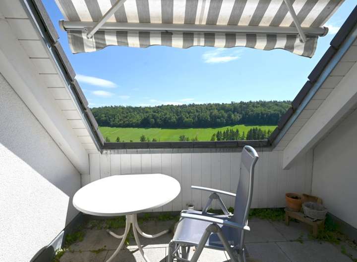 5 1/2- Zimmer-Wohnung mit Dachbalkon, Küche, Bad, WC, Flur, Abstellraum.