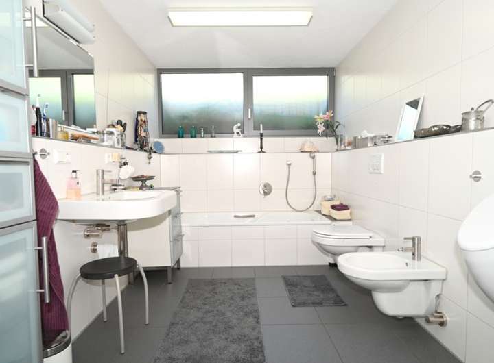 Das Bad - ein Klassiker des guten Geschmacks in Weiß, edel in der Kombination mit Wannenbad und Duschkabine, WC, Bidet und Pissoir.