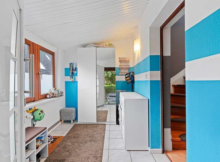 Das Haus ist voll unterkellert und bietet wertvollen Raum: Neben einem Waschraum und Abstellräumen stehen auch ein beheizbarer Hobbyraum und eine kleine Werkstatt zur Verfügung.