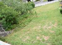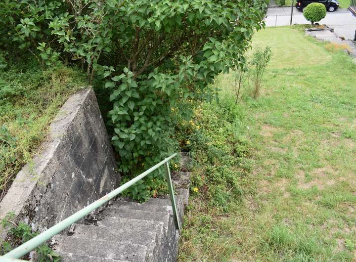 Das Grundstück ist eine Hanglage und ist seitlich bewachsen mit Sträuchern, die leicht zu entfernen sind.