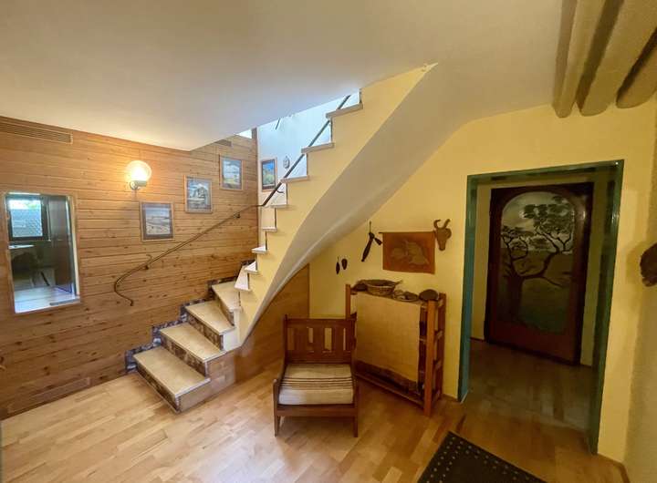 Über eine Treppe erreichen Sie das voll ausgebaute Untergeschoss, welches Ihnen zusätzlichen Wohnkomfort bietet: Zwei weitere Schlafzimmer, ein Badezimmer mit Dusche, eine gemütliche Bar mit direktem Zugang zur Terrasse, eine Werkstatt und ein Vorratsraum schaffen vielfältige Nutzungsmöglichkeiten.