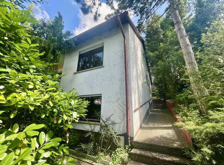 Nachdem Sie Ihr Fahrzeug bequem in der Garage abgestellt haben, gelangen Sie über einen grün bewachsenen Treppenaufgang zum Eingang, der abgeschirmt und oberhalb des Grundstücks liegt. Schon hier spüren Sie die besondere Atmosphäre dieser Immobilie.