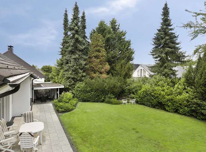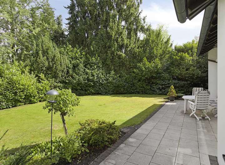 Der Außenbereich ist mit einer großen Rasenfläche, altem Baumbestand, Pflanzenbeeten sowie mehreren Hecken und Sträuchern gestaltet und bietet den perfekten Platz zum Genießen der vielen Sonnenstunden. Der nicht einsehbare Garten ist über die zwei Zugänge vom Haus aus und durch die Garage sowie ein Gartentor erreichbar.