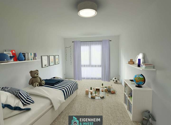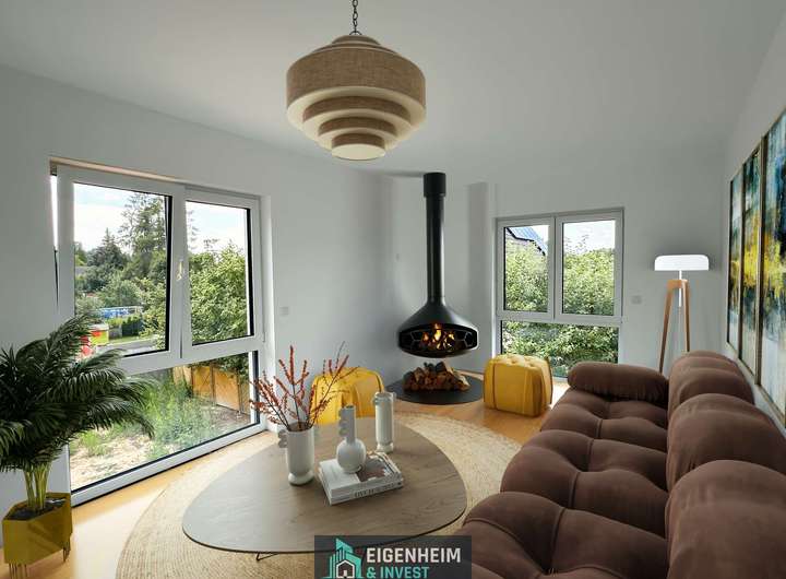 Für wohlige Wärme sorgt die Fußbodenheizung, betrieben durch eine effiziente Luft-Wärmepumpe, die in allen Räumen ein angenehmes Wohnklima schafft. Hochwertige 3-fach verglaste Kunststofffenster tragen zur hervorragenden Energieeffizienz und zum optimalen Schallschutz bei.
