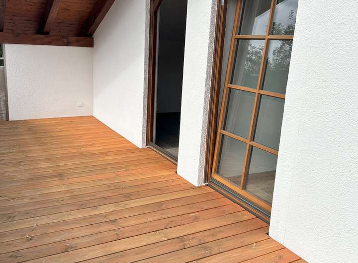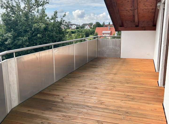Der Balkon wurde 2023 mit neuen Dielen belegt und bietet sehr viel Platz um die freie Zeit und die Sonne zu genießen.
