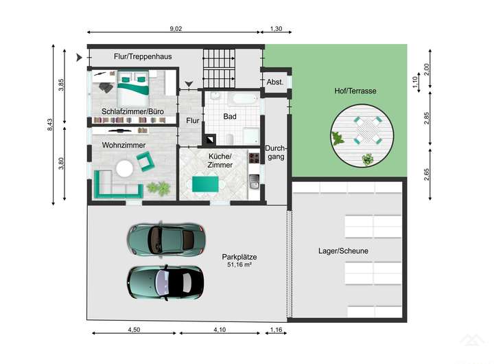 Mehrere Stellplätze direkt am Haus – ideal für Firmenfahrzeuge