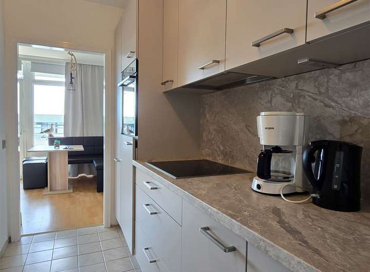 Das Apartmenthaus "Vierjahreszeiten" mit dieser Ferienwohnung liegt direkt an Großenbrodes neuer Promenade - nur einen Steinwurf vom weißen, feinsandigen Südstrand und vom belebten Seebrückenvorplatz entfernt