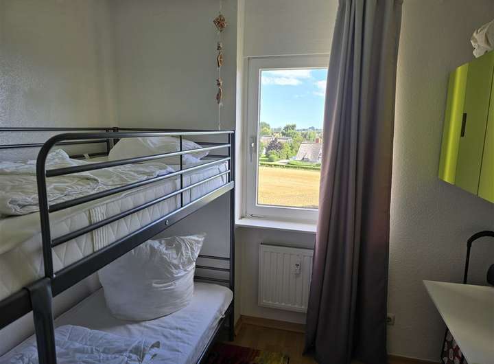 Im Kinderzimmer befindet sich ein Etagenbett (je 0,90*200 cm), Spielecke und Wäscheschränke.
