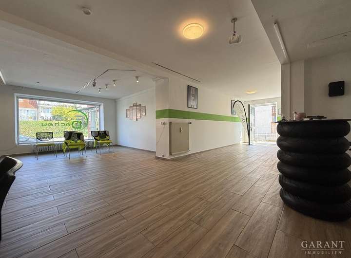 Im Erdgeschoss befinden sich drei vollständig vermietete Gewerbeeinheiten: eine Arztpraxis mit ca. 94 m², eine Fahrschule mit ca. 99 m² sowie eine 24/7-Automaten-Metzgerei mit ca. 39 m². Die Mieterstruktur ist solide, die Lage für Gewerbebetriebe attraktiv. Dazu sind auf dem Grundstück vier Garagenplätze sowie acht Außenstellplätze vorhanden.